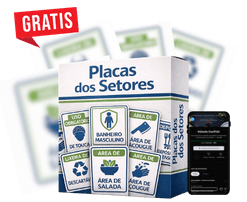 Placas padronizadas para identificação correta das áreas do estabelecimento, facilitando a organização, a rotina operacional e o cumprimento das exigências sanitárias, com tutorial em vídeo.