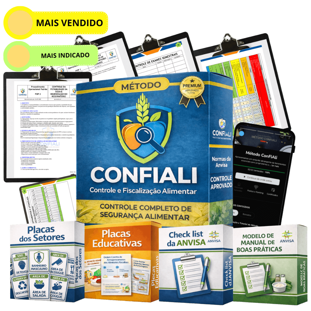 O Método ConFIAli™ é um sistema prático de organização sanitária que reúne planilhas, documentos, checklists e orientações baseadas na legislação vigente para facilitar a aplicação das exigências da Vigilância Sanitária.